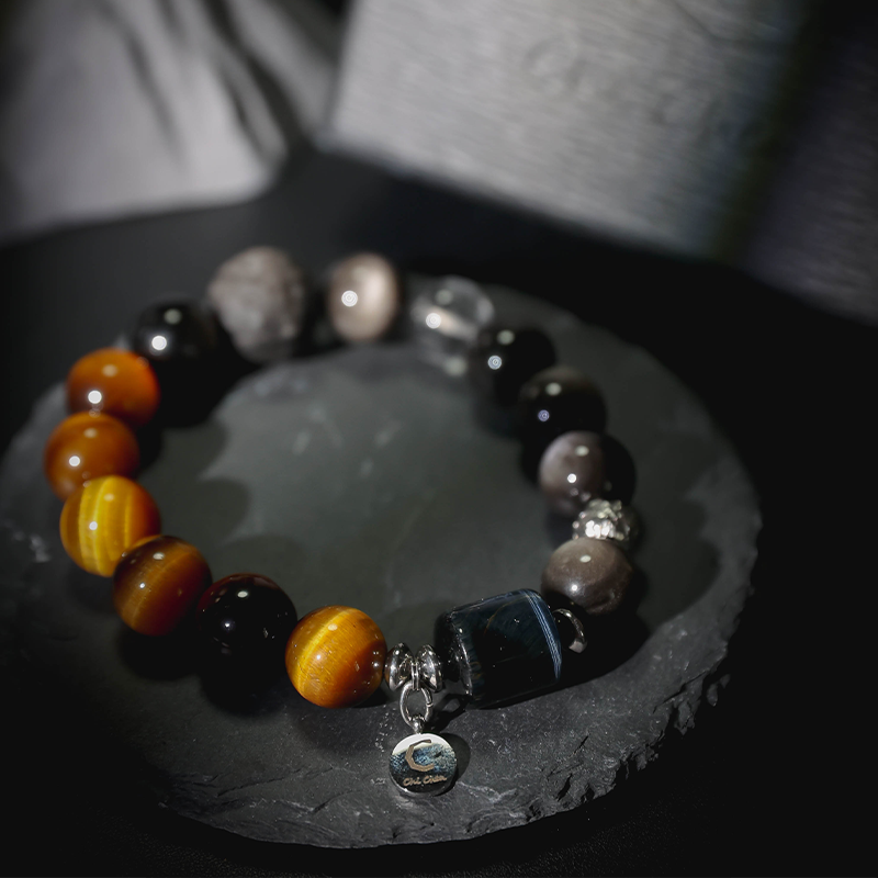 ◦ 天然藍虎眼 | 藍虎眼石擁有深邃藍色光澤,帶有絲絲金屬光澤。象徵勇氣與冷靜,能增強直覺與保護能量,幫助平衡情緒與專注思考。